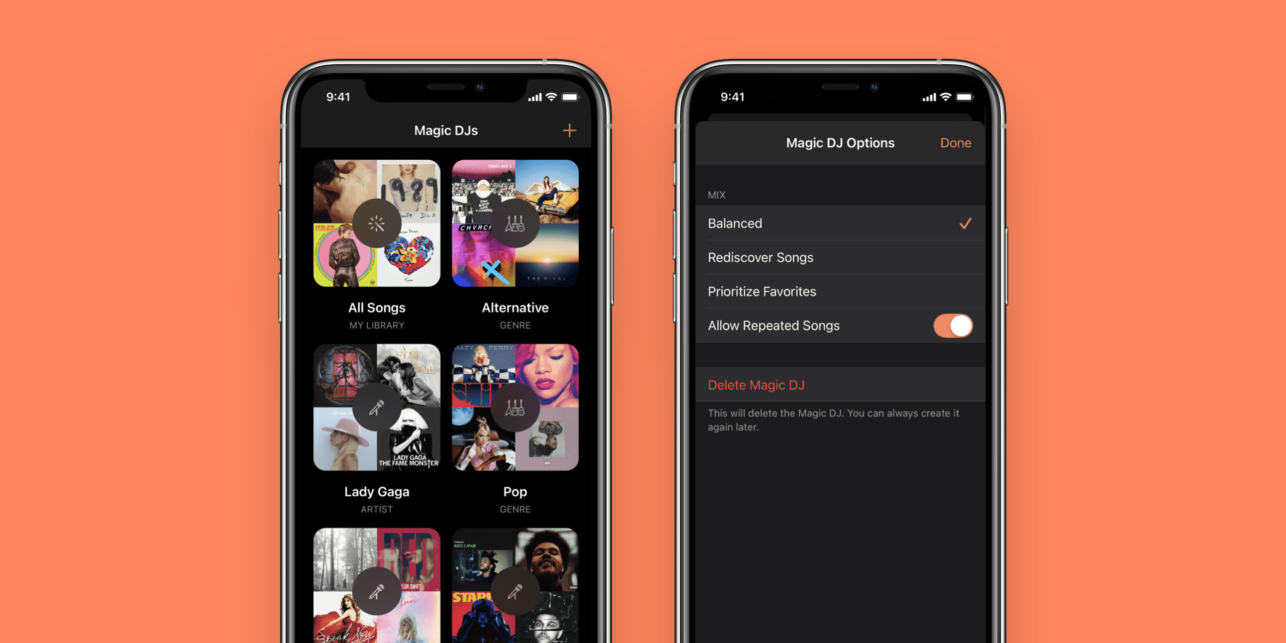 With the new Magic DJs tab, users can create new mixes based on a specific artist or genre in addition to the previous all-library mix. Each mix can be adjusted to use one of Next’s beloved algorithms — Balanced, Rediscover Songs, and Prioritize Favorites —which were completely rebuilt from the ground up to be more relevant and diverse.